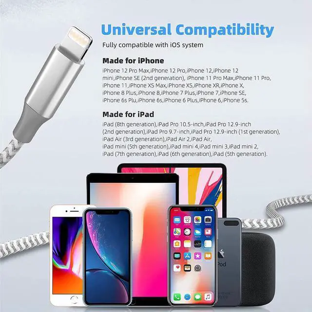 iPhone charger cable M-Fi-certified ensures complete charge and sync compatibility with