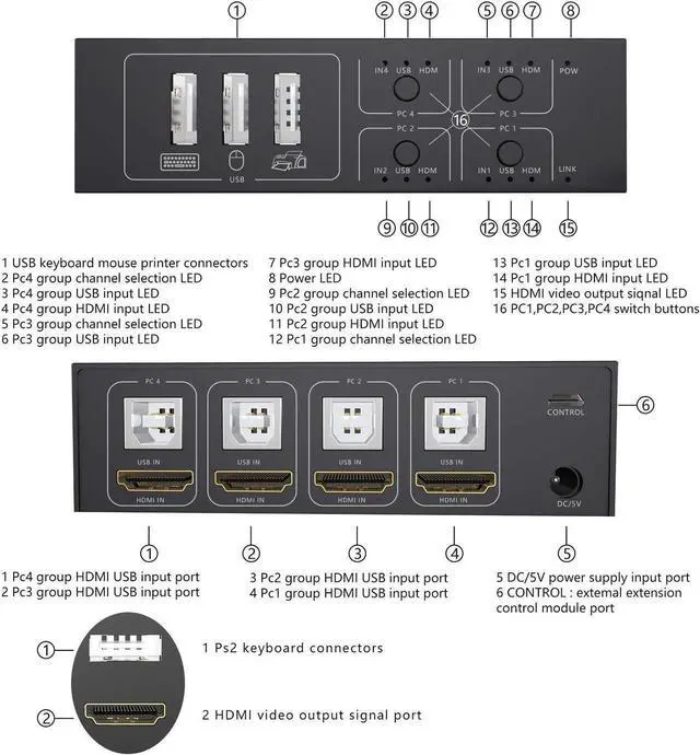 * In order to be compatible with more keyboards, mouce, printers and U disk, this 4 port switch does not support hotkey switching.