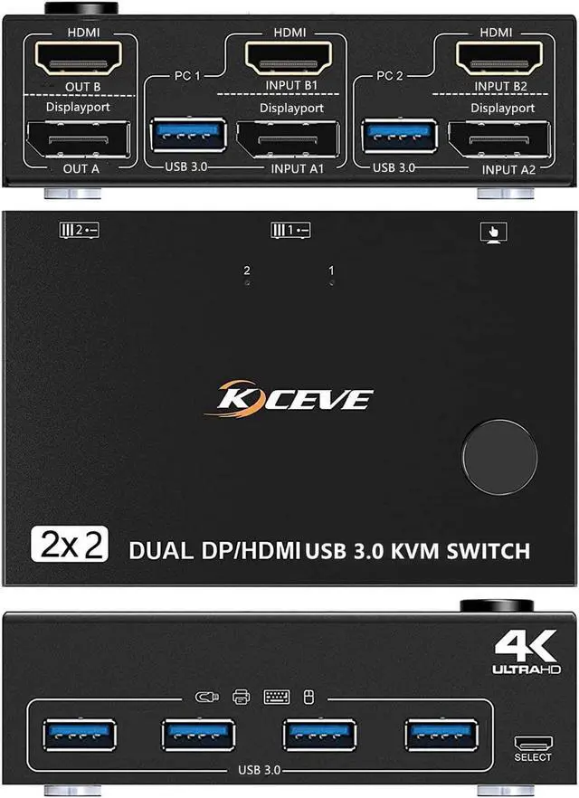 [HDMI + DP Port KVM Switch] This is a perfect KVM switch for DP and HDMI ports device to share keyboard mouse and monitor. When in copy mode the main screen can be copied to the second output screen. When in extend mode, the window from the main screen can be dragged to the second output screen.