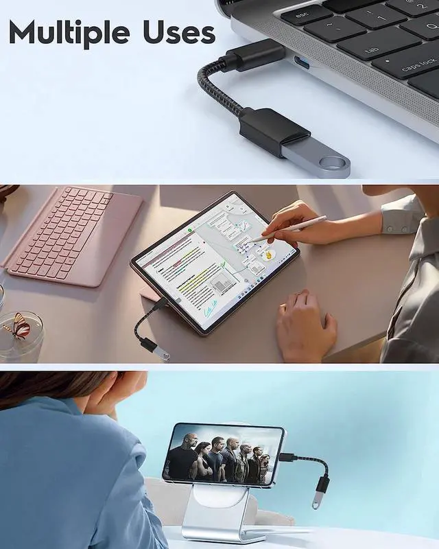 [USB On-The-Go] Plug in and use computer peripherals, such as flash drive, keyboard, hub, mouse and more, this USB-C to USB adapter makes your USB-C devices compatible with USB drives and any other USB devices that support USB On-The-Go.