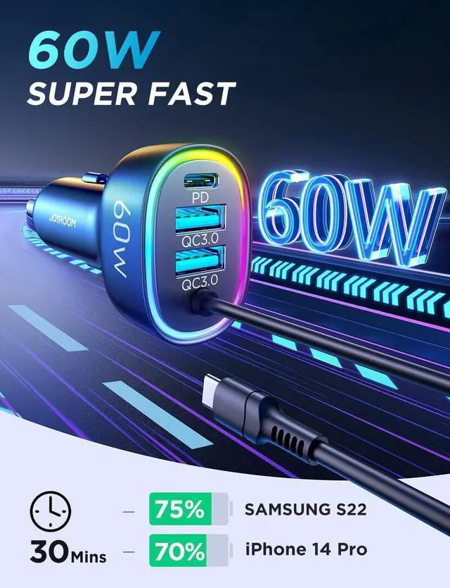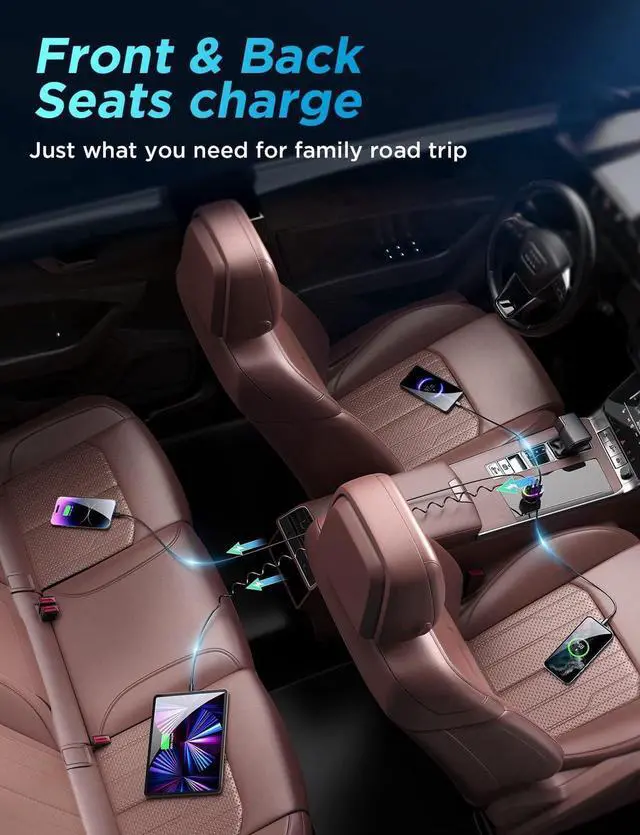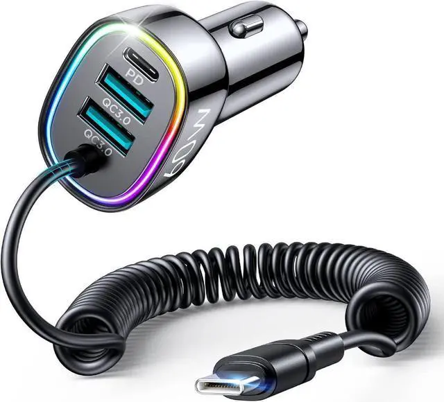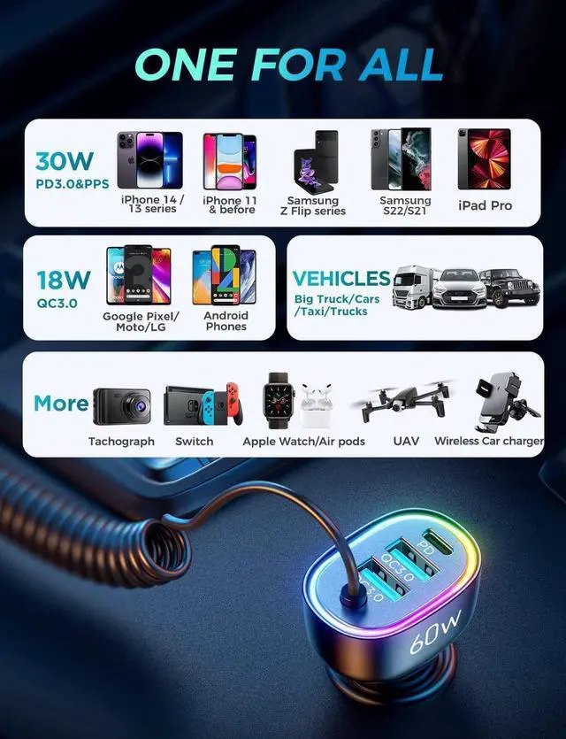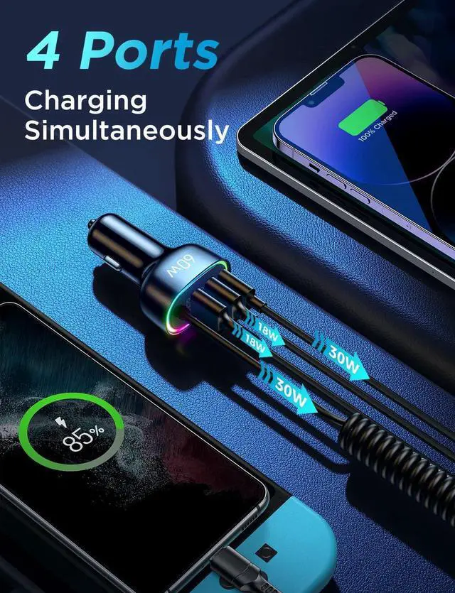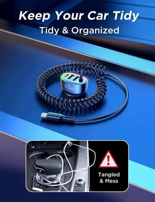 Name: 60W 4-in-1 Car Charger with Coiled Type-C Cable