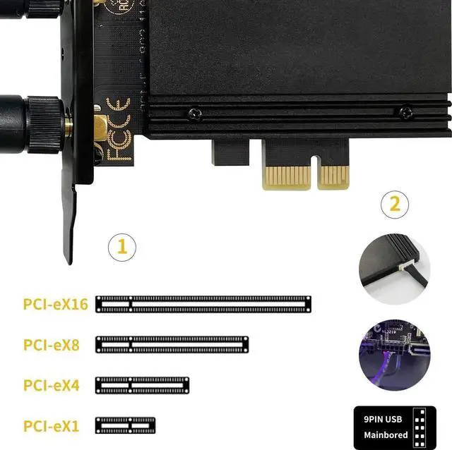 Interface: PCI-E/X1/X4/X8/X16; 9-pin usb for Bluetooth