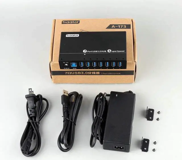 Industrial-grade, rugged all metal 7-port USB hub with mounting bracket;