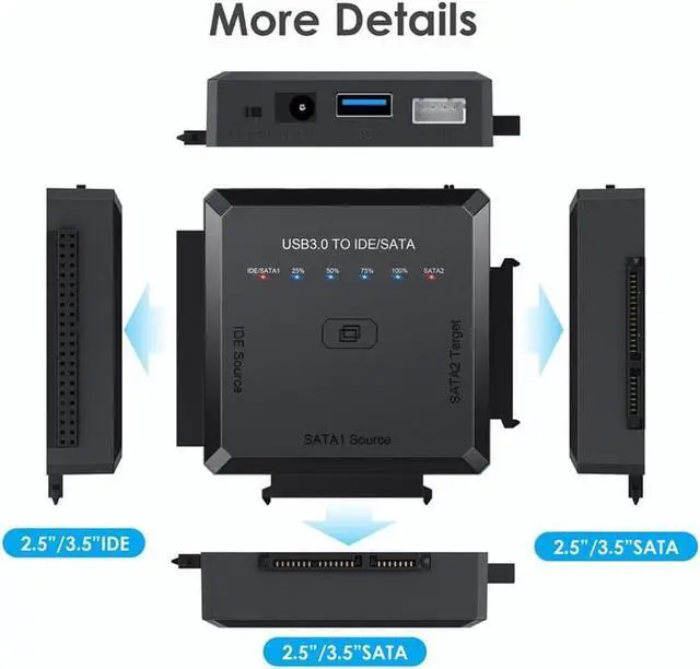 The SATA /IDE To USB 3.0 Hard Drive Adapter Cable w/One-Touch Storage Backup allows you to install and access SATA drives quickly, it is a perfect solution for data recovery, drive imaging, and testing centers, or any environment requiring fast access to uninstalled/archived drives.