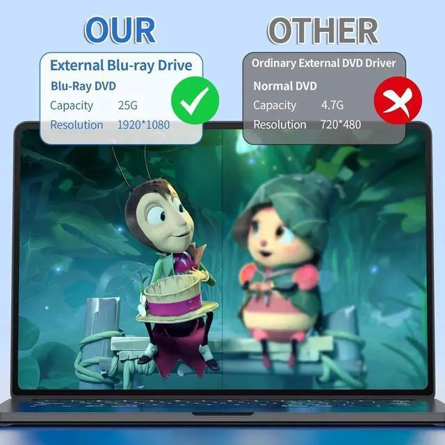 Plug and Play Convenience: For CD/DVD, the external Blu-ray drive requires no additional drivers or applications. Simply connect it via USB 3.0 or Type-C to your laptop or desktop to play movies, listen to music, or burn discs (Unable to burn