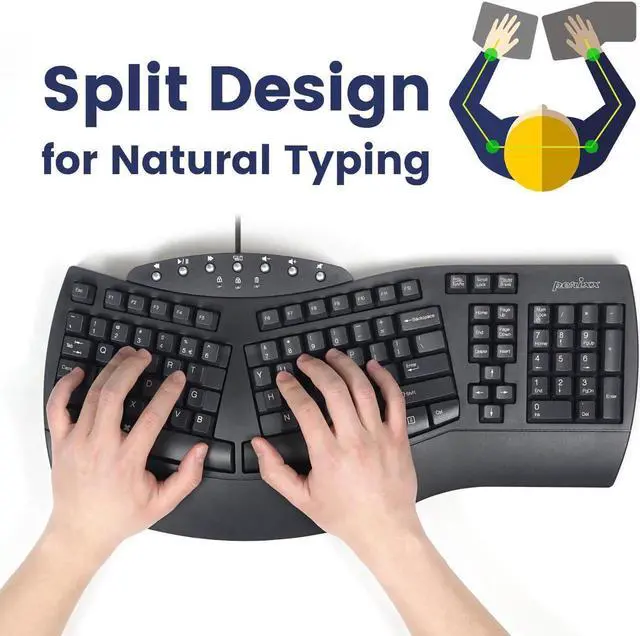 ERGONOMIC DESIGN - Split-key and 3-D design match your natural arm and hand position. Integrated palm rest to support your wrists in a comfortable position
