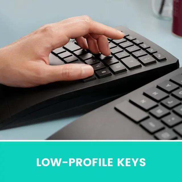 • *CURVED, SPLIT-KEY DESIGN - Ergonomic keyboard with curved keys and split-key sloped promotes natural arm and hand position while typing. Minimize the discomfort on your shoulders, wrists, and forearms after prolonged use.