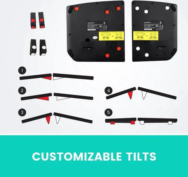 • *ADJUSTABLE TYPING ANGLE - Adjustable tilt angle on the bottom of the keyboard with customizable positions, the user can select the best posture based on their personal preference.