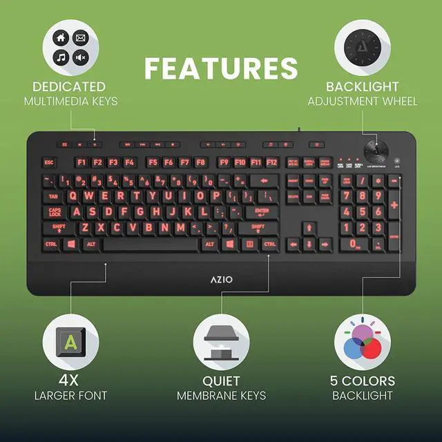 The only keyboard with Chartreuse backlight - the most visible color to the human eye.