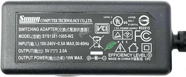 NEW Genuine Sun-ny SYS1381-1005-W2 AC Adapter 5V 2A 10W Switching Power Adapter