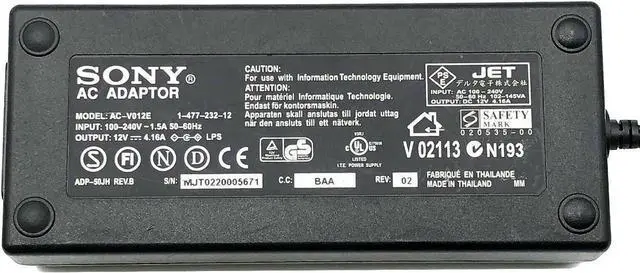 Genuine So-ny AC-V012E AC Adapter Charger Power Supply 1-477-232-12 W/P.Cord