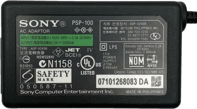 Genuine So-ny PSP-100 AC Adapter Power Suppy ADP-624SR 5V 2000mA W/P.Cord