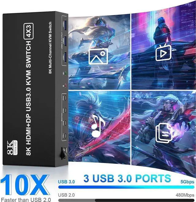 [Ultra HD 8K@60Hz] The HDMI 2.1, DP 1.4 KVM switch supports resolution up to 8K@60Hz and downwards.