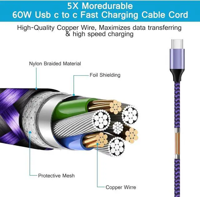 Fast Charging and Data Sync: The samsung galaxy S23 ultra 5g wall charger Type c cable built-in a 56kilohom resistor on Type-C connector, which ensure the transfer speed can reach achieve is 480 Mbit/s. 2Pack USB C Cable accelerates the charging speed by delivering 5V/3A safe charging power. Provide long-term use. Data transfer and power charger 2 in 1 Type C cable for save you more time.