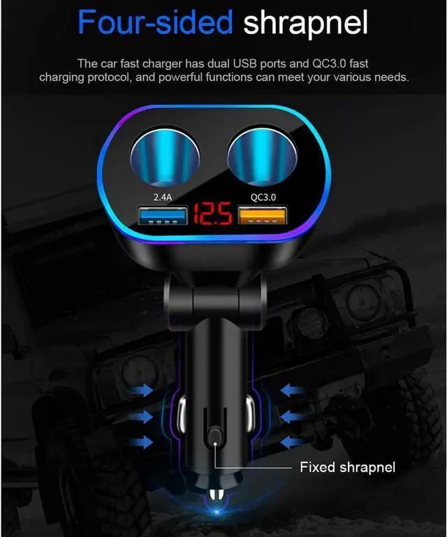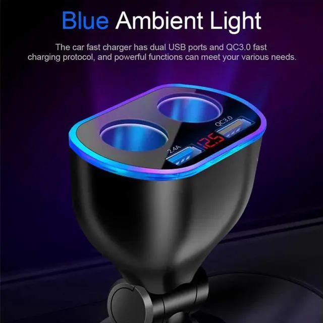 Dual USB Port & 2 Socket Cigarette Lighter Adapter AGEK USB Car Charger Adapter with 2.4A and quick charge 3.0 dual USB charging ports with 2 car cigarette lighter socket can supply power for 4 devices at the same time 120W power output current enable you to charge multiple devices rapidly such as mobile phone GPS dash cam seat heater cooler box handheld vacuum cleaner or other portable appliances in your vehicle. Quick Charge 3.0 & IntelligentThis cigarette lighter splitter with quick charge 3.0 USB port to boost the charging process. QC 3.0 sport powers up compatible devices 75% faster than conventional chargers.