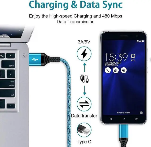 Fast Charge & Sync: Type C Charger Cord Fast Charge Output power up to 5V/3A, ensured by high-speed safe charging. The USB 2.0 supports data transfer speed can reach 480Mbps, data transfer and power charging 2 in 1 Type C Cable. USB A to C type c charger cord with Qiuck Charge Wall Charger for Fast Charging.