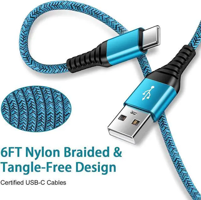 Extra Long: With the 6ft type c charging cable, you can lie on the sofa and use your devices while charging at the same time. More convenient on traveling, office, car, power bank, several cell phones, Pods, share to families.