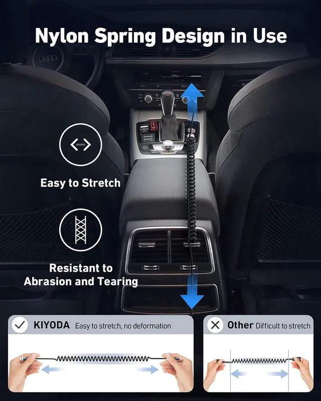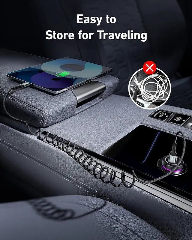 Coiled USB C Cable: 3FT Coiled USB A to Type C Charger Cord is designed with retractable spring design, no tangle, no knot, not taking up space and easy to carry and use. Short usb cable can well save the space in the car and reduce clutter. This coiled usb type-c cables made for your car.