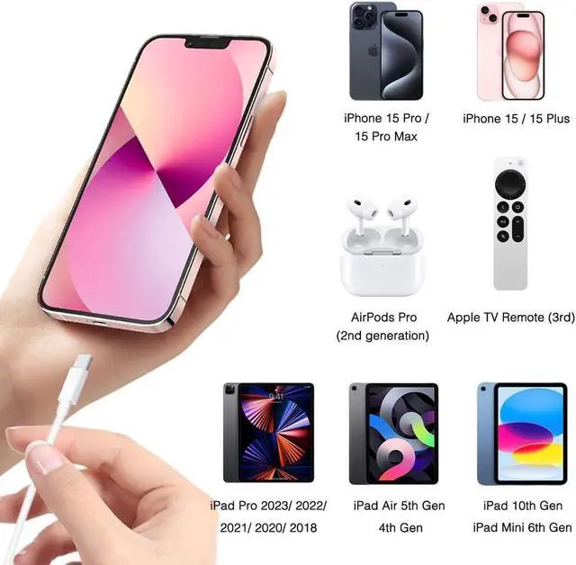 • Compatible with iPhone 15/15 Plus/15 Pro/15 Pro Max, iPad 10th Gen, iPad Pro 12.9 inch/11 inch/Air 4th/Air 5th and mini 6th Gen., and other USB C interface devices