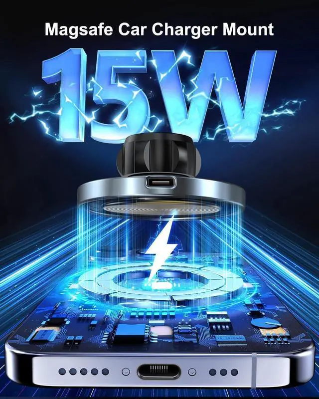 Strong Magsafe Car ChargerThe magnetic wireless car charger is suitable for iPhone 15/14/13/12 series and other phones supporting MagSafe charging. Built-in magnetic element, and the strong suction force can closely fit the phone.