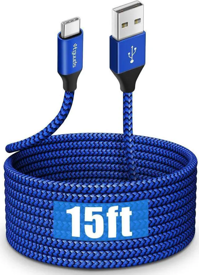 15ft Extra Long and ConvienceWith etguuds 15ft long USB-A to USB-C Cable, it' s giant convenience! You can charge and use your Phone / Laptop / Game Controller at a distance freely, no matter at home or office, car or outdoor, you don' t have to wait for charging, just enjoy your life!