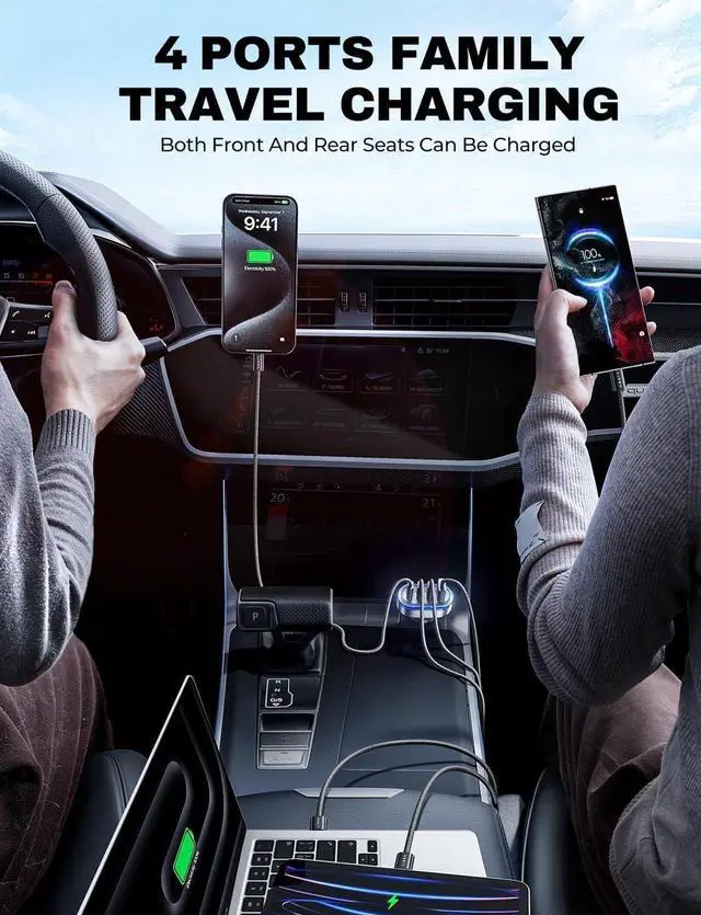 4 in 1 mutil Port for Family & Simultaneous Chargingmulti port usb c car charger fast charging is designed for family and big group charging simultaneously, power up all devices in your car at once. Perfect when you have kids fighting over the Car USB Charger Multi Port! Everyone kept their electronics charged without fighting to share cords. Best gifts for your trip.
