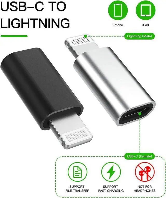 [USB-C to Lightning Adapter]: An ideal solution to charge and sync iOS devices by a USB-C cable, saving the trouble of carrying extra cable around. Directly makes iOS devices compatible with USB-C cable. Enables your iPhone & iPad machine to connect a USB-C cable. [Plug and play]: Minimum design, no additional drivers or installation required. The Fool-proof and reversible Lightning port provides conveniences to be plugged in either direction.