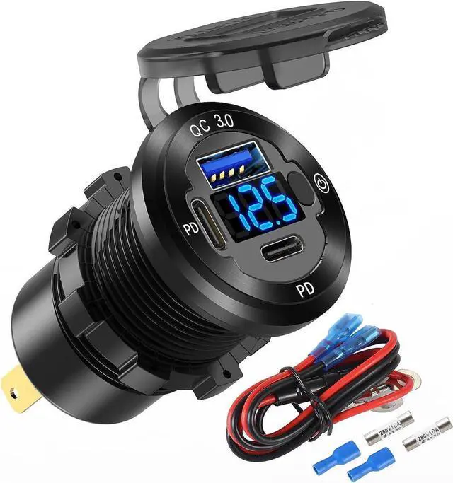 [LED Voltage Display] With a blue LED voltage display, the USB socket automatically monitors the vehicle' s battery and electrical system, displaying the car voltage on the screen. The three USB charger socket allows you to monitor the battery health while driving.