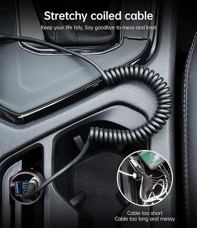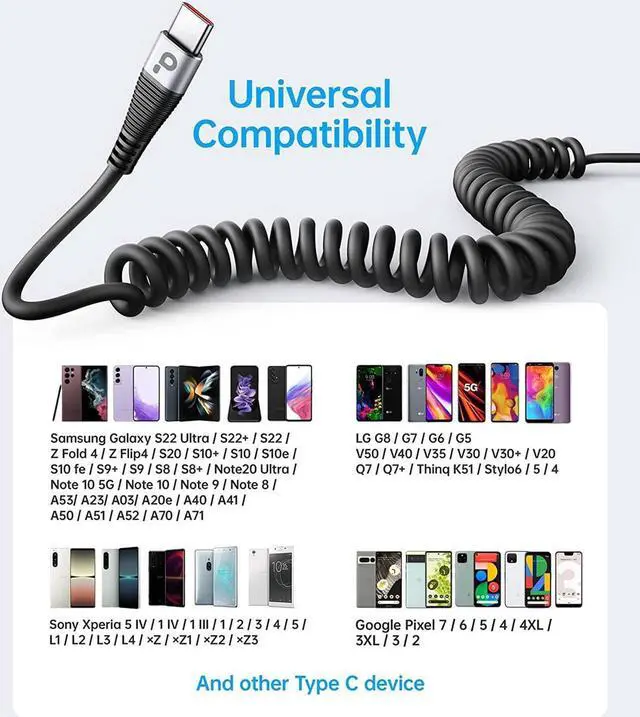 Car: The USB Type-C cable is designed with stretchable, no tangle, no knot, and does not take up space. This coiled USB C charging cable is made of upgraded high quality PU material, which is flexible, easy to stretch, effortless, quick to rebound and not easily deformed.