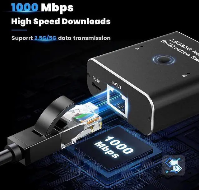 High-Speed Transmission: Using Category 6 Ethernet cables and RJ45 connectors, the 2.5G /5G Ethernet switch can support Max 10000Mbps, it can be 1 in and 2 out, or 2 in and 1 out, ensuring and efficient data transfer.