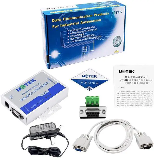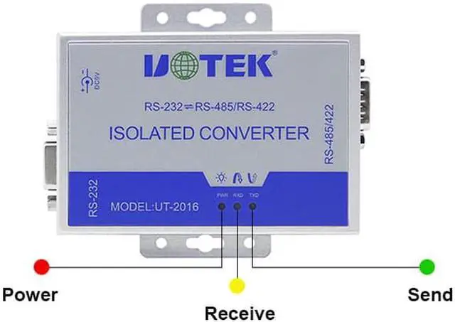 UT-2016 is a converter with optoelectronic isolation, complying with RS-232C, RS422, and RS-485 standards; it is the rs232 to rs422 converter / rs485 converter. The built-in optoelectronic isolator can provide: Up to 2, 500Vrm isolated voltage.