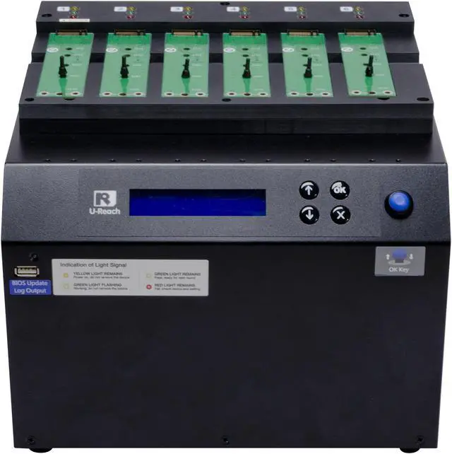 ) 3) Data Sanitization: Quick Erase, Full Erase, DoD Erase and DoD Erase + Compare. 4) Open platform design supports NVMe & SATA Express M. 2/U. 2 (via adapter) /PCIE SSD/Mini PCIe (via adapter). 5) Cable free connection for easier M. 2 connection and disconnection. 6) Supports M key and B+M key for M. 2 PCIe devices. 7) Log report management records all task details for better enhanced management. NV-BM series, a professional PCI-E M. 2 duplicator is specially designed for high-volume duplication. U-Reach adopted a unique multi-tasking technology, it can simultaneously copy 5 PCI-E M. 2 targets with a high transfer speed of 18 GB per minute. We guarantee the highest productivity without speed degradation even as the number of targets increase. The NV-BM series PCI-E M. 2 duplicator provides four copy modes: quick smart copy, all partitions copy, percentage copy and whole copy, that can meet different duplication task requirements. The quick copy mode copies data and skips blank area. NTFS, Linux (Ext2/Ext3/Ext4), FAT/FAT32, Mac (HFS, HFSX, HFS+) format all can be supported with quick copy mode. In addition, the NV-BM series PCI-E M. 2 duplicator is equipped with different levels of secure erase functions, Quick Erase, Full Erase, DoD 5220 Erase government standards and which can fulfill different levels of security for PCI-E M. 2 wiping.