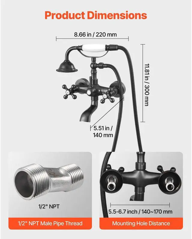 Mounting Hole Distance: 5.5 - 6.7 inch / 140 - 170 mm