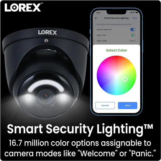 If youre busy, answer instantly with the pre-set Quick Responses. Customize your security with Smart Security Lighting. You can assign various colors to different motion events and camera modes choose from 16.7 Million colors. See full-color video, even at night with Color Night Vision Booster. Pair the security camera with a compatible Lorex 4K Fusion NVR to enhance your home monitoring.