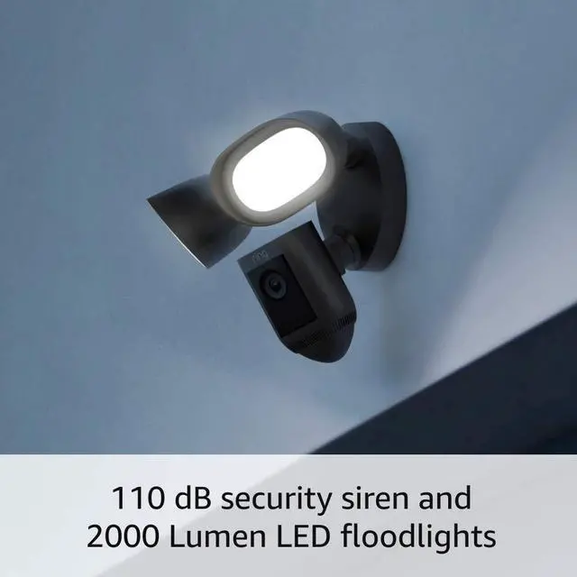 1080p HD security camera with motion-activated LED floodlights, Two-Way Talk and Audio+, 3D Motion Detection, HDR, and a built-in 110 dB security siren