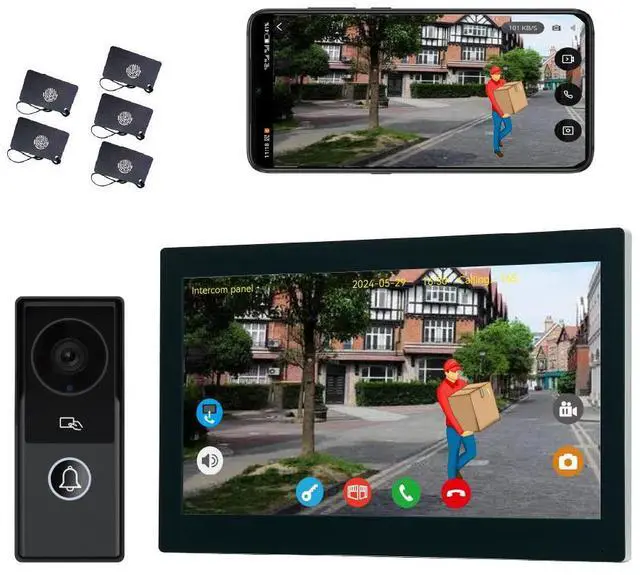 1080P 2MP HD Camera&Touch Screen Monitor7/10-inch TFT touch monitor with slim design, support APP "Tuya Smart" or "Smart Life" wireless WiFi, intercom hand-free. The wifi video doorbell intercom system has 1080P HD camera, 155° wide angle, with rain cover build-in speakers and microphone, built-in infrared sensor, IR night vision, rainproof, dustproof and anti-vandalism.