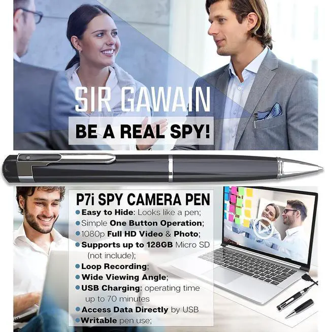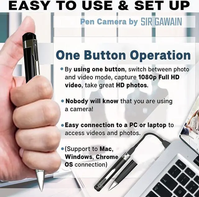 Plug and Play Compatibility The SIRGAWAIN pen hidden camera works with Mac and PC devices and features a simple USB plug in and USB reader to transfer data.