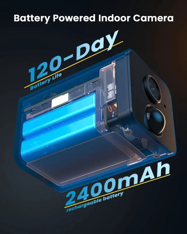 120 Days Long Time battery life & 2 Recording ModesieGeek security camera indoor wireless ZS-GX7S is built-in with a 2400mAh rechargeable battery, with the latest low power consumption tech to work up to 120 days on a full charge(20-30 triggers per day). Just Install it and forget it. This home indoor camera also supports 24/7 continuous recording in addition to motion events recording (default mode). Only supports 2.4GH z WiFi ( 5GHz is not supported ).