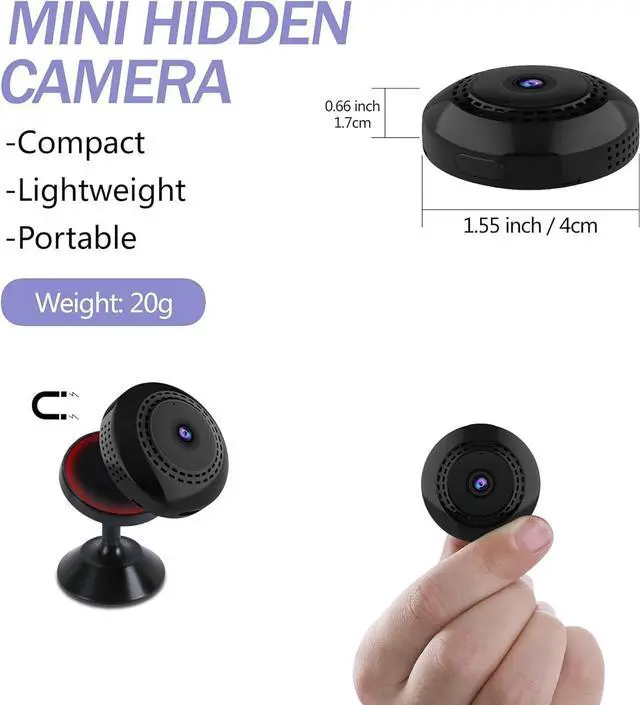 Mini WiFi Spy Camera 1080P Video Recording Live Feed, Wireless Hidden Spy Cam Nanny Camera/Auto Night Vision/No Light Night Vision/Motion Activated Alarm(2025 Upgraded Phone APP)