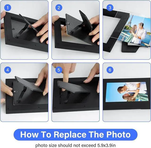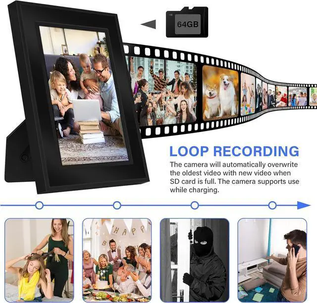Suitable for Many OccasionsThe photos in the frame are interchangeable, you can change them to your family pet, your family group photo or landscape photo at will, but it should be noted that the photo size should be 4.1 in*6in. With the shape of a photo frame, you can place it on the table or hang it on the wall. Use it to conduct some indoor surveys, such as whether there are burglars under the burglary, the living conditions of the elderly, etc.