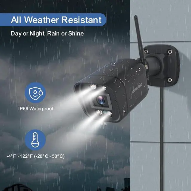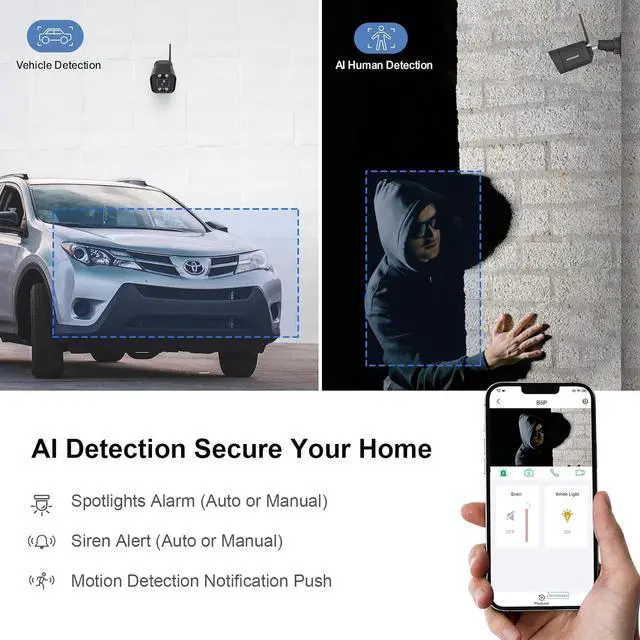 Powerful Sound and Light AlertsThe 100dB siren and 4pcs spotlight alert system integrated into the Acculenz outdoor cameras will help you scare away intruders and alert you to potential dangers while recording clear and important evidence.