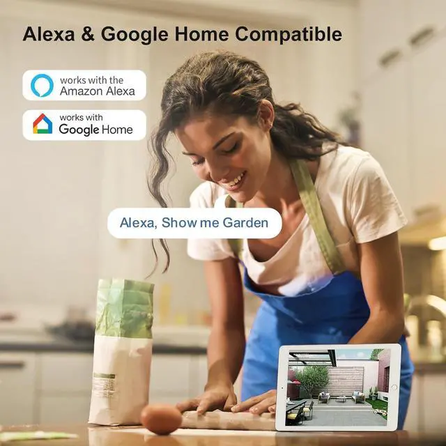 24/7 Smart AI Detection & Home IntegrationDesigned by IP66-rated waterproof housing, is capable of all-weather intelligent detection for you in all seasons and accurately detects human/vehicle movement. Also, only by evoking Alexa and Google Assistant through voice control, it will show you the monitor screen of your garden.