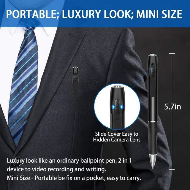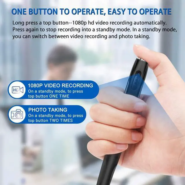 [ 2 in 1 Pen Camera with 1080P ] Not only a spy camera, but also a pen, which captures HD 1080P video/ picture in real time this pen camera. The Spy Camera Pen is equipped with BOTH 1080P HD video recording and ULTRA HIGH RESOLUTION photo taking capabilities! Plus, it is super simple to switch between these two functions.