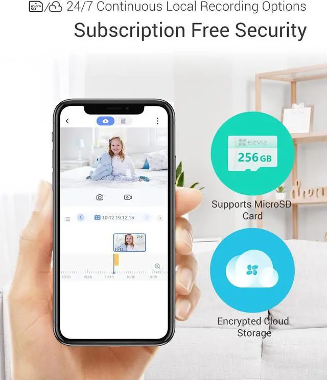 Subscription Free Video Storage: Every EZVIZ WIFI Security Camera comes with a MicroSD Card Slot included. If you need additional back up, subscription based cloud storage options also available but not required. (MicroSD sold Seperately)