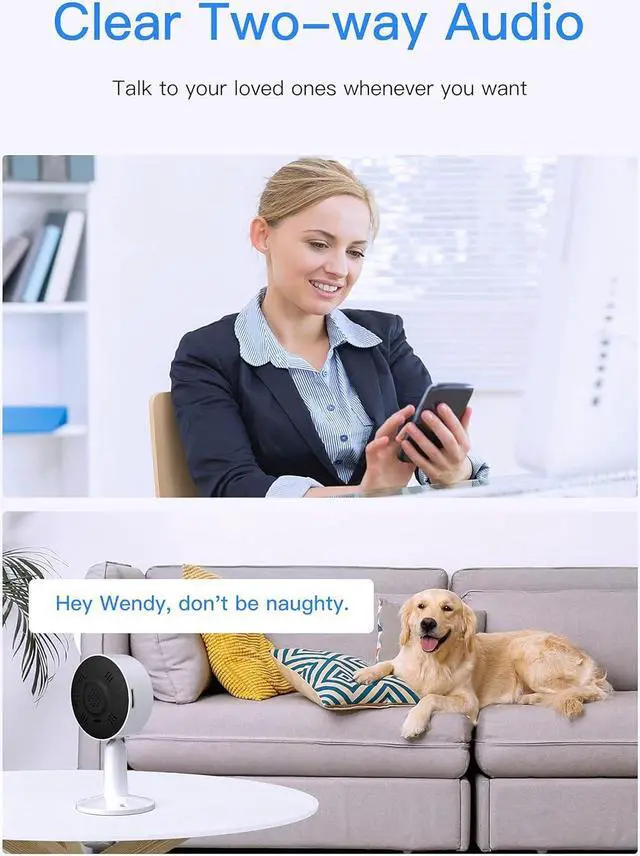 Works with Alexa & Google and Clear 2-way audio With Built-in Mic and speaker, this smart home camera can allow you to talk with your baby/pets via App anytime, anywhere. Simple ask Alexa or Google Assistant to show your baby room or pet room on Echoshow or Chomecast enabled screen devices.