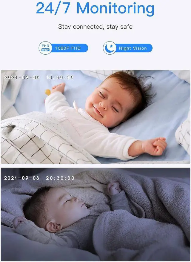1080p Full HD & Crisp Night VisionIN1 baby camera is super easy to install and delivers 1080p resolution videos and crisp night vision. You can keep an eye on your little baby clearly via smartphone App or laptop browser no matter day or night.
