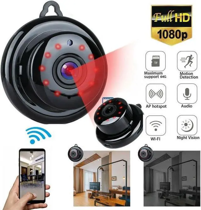 Small mini ature camera: Our camera has a round and compact design, making it very suitable as a home security camera. With camera with audio, you can put the miniature camera in the corner of a house, warehouse, backyard, shop, office, etc.