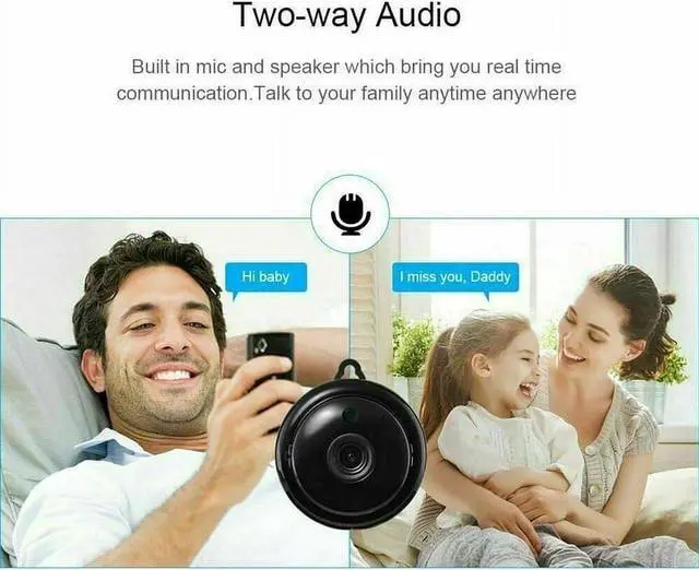 Two-way audio: built-in speaker and microphone in the wifi camera, cameras provide convenience for you to communicate with your family and pets. You can also view them through the video on your mobile phone or other devices anytime and anywhere. Small camera is your ideal nanny camera