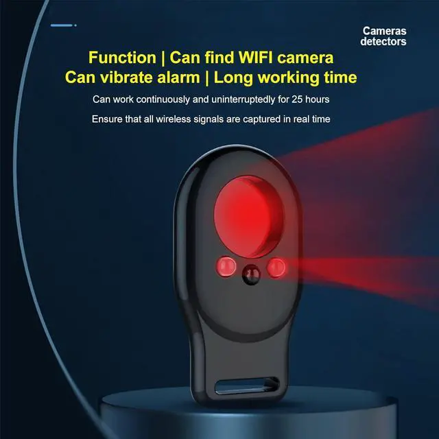 Professional Design: This cordless signal detector is expertly designed to locate WIFI cameras with precision. Equipped with a vibration alert feature, it ensures immediate notification of any suspicious surveillance devices within a range of 0-5m/0- 16.4 ft.