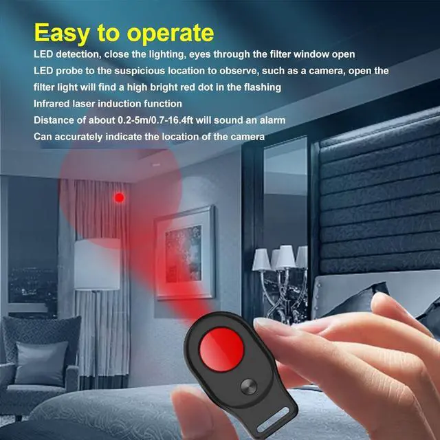 Easy Operation: LED detection allows for discreet surveillance. By closing the light source and enabling the LED probe through the filter window, users can easily observe and identify any suspicious locations, such as hidden cameras, by noticing the flashing bright red dot.